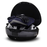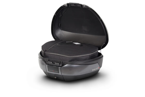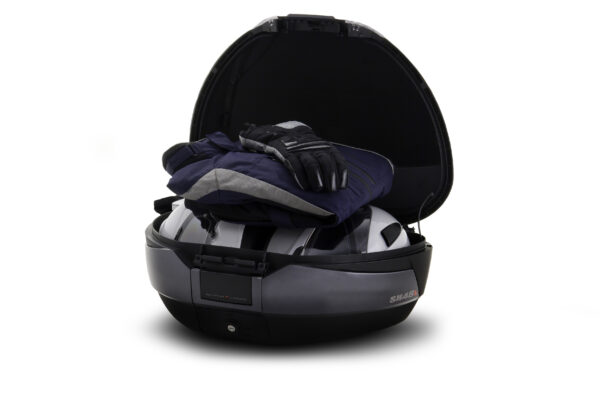 El top case SH48 se trata de un producto de gama alta, con todas las exigencias del mercado y las máximas prestaciones. Con capacidad para dos cascos modulares y un peso de 3,7 Kg de baúl, es la maleta más ligera del mercado en baúles de alta capacidad. Con ello reducimos las vibraciones haciendo sufrir menos a los soportes y chasis de la moto. Su marco estructural garantiza una alta rigidez y resistencia con un peso mínimo.