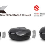 La maleta de moto eXpandable SH58X terminación look carbono, con volumen regulable en 3 posiciones (L, XL y XXL), tiene capacidad para 2 cascos enduro sin necesidad de tumbarlos, más accesorios de viaje. La tecnología de vanguardia y el diseño innovador de la maleta eXpandible la han hecho acreedora del prestigioso premio de diseño Reddot Design Award 2017, una referencia entre diseñadores y fabricantes. Única maleta del mercado regulable hasta 58L, se adapta igual al día a día en la ciudad como a esos viajes de aventura que siempre has soñado realizar. Una maleta muy versátil, en la que cambiando entre sus distintas posiciones se pasa de una maleta aerodinámica a un gran baúl en apenas unos segundos. Su marco estructural garantiza una alta rigidez y resistencia con un peso mínimo, y también dispone de tiras limitadoras internas que aseguran que no se mueva la carga interior.