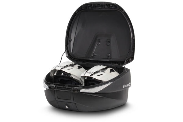 Si te gusta el asfalto y el Sport Touring es lo tuyo, SH58X es tu maleta. Su sofisticado look carbono, a conjunto con las maletas laterales SH36 terminación look carbono, respira modernidad y sofisticación. Si eres de los que lleva el diseño un paso más allá, te gustará poder elegir entre los distintos colores de tapas disponibles: blanco, negro metal y new titanium, o la opción virgen para que la personalices a tu gusto.