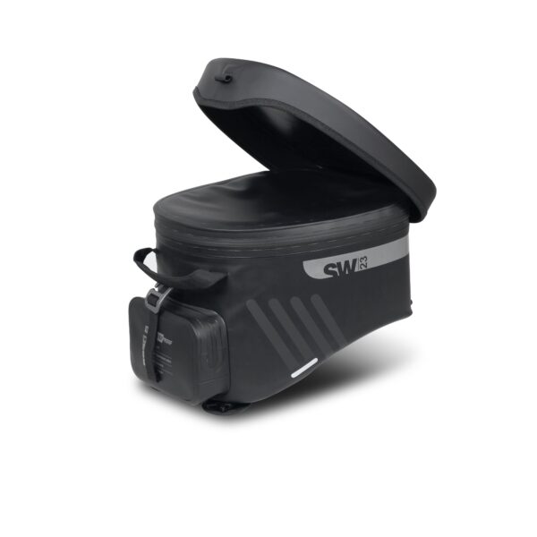 La SW23B es una bolsa de depósito de 14 litros de capacidad e impermeable. Gracias a su fijación de base de depósito, es fácil de instalar y usar. Además, dispone de un sistema magnético de 4 puntos opcional para motocicletas con depósito metálico (X1SL11).
