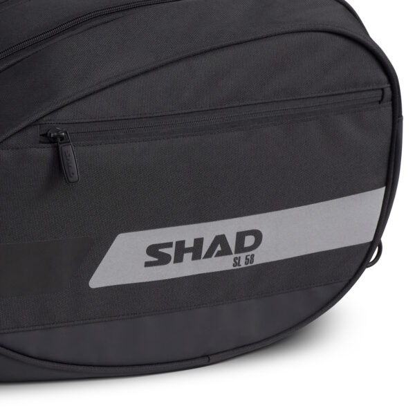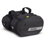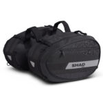 Diseñadas para ir cargadas, las alforjas son expandibles de 46 a 58 litros entre las dos. Cada bolsa cuenta con una capacidad para un casco integral de talla XL. Las correas permiten asegurar la carga y mantener las bolsas comprimidas para que no se muevan cuando la moto esté circulando. Además, su estructura interna reforzada mantiene la forma de las alforjas cuando están vacías. Los elementos reflectantes laterales y traseros ofrecen una mayor seguridad. De serie, se incluyen dos fundas con agujeros de drenaje para proteger las bolsas del agua y evitar que esta se acumule. Las bolsas se complementan con asas acolchadas y bolsillos exteriores con cremallera que permiten un acceso rápido sin necesidad de desbloquear el compartimento principal.