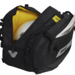 Las cremalleras son fáciles de abrir y desbloquear con guantes. Una vez abiertas las alforjas, en su interior se encuentra el compartimento principal de gran capacidad gracias a su tamaño expandible, ofreciendo infinitas combinaciones de almacenaje. El interior en amarillo facilita la búsqueda y visibilidad de los objetos transportados y las bandas elásticas internas permiten una mejor organización del equipaje.