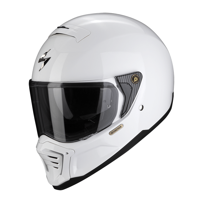 Casco Scorpion Exo-HX1. Casco integral de estilo “neo-retro” de diseño innovador. Se trata de un casco muy ligero fabricado con estructura Ultra TCT (Thermodynamical Composite Technology), que proporciona una protección excepcional contra los impactos. Dispone de acolchado interior Kwikwick3, de pantalla desmontable con mecanismo magnético y de visor solar interior. Este casco forma parte de la gama Street Fight de Scorpion.