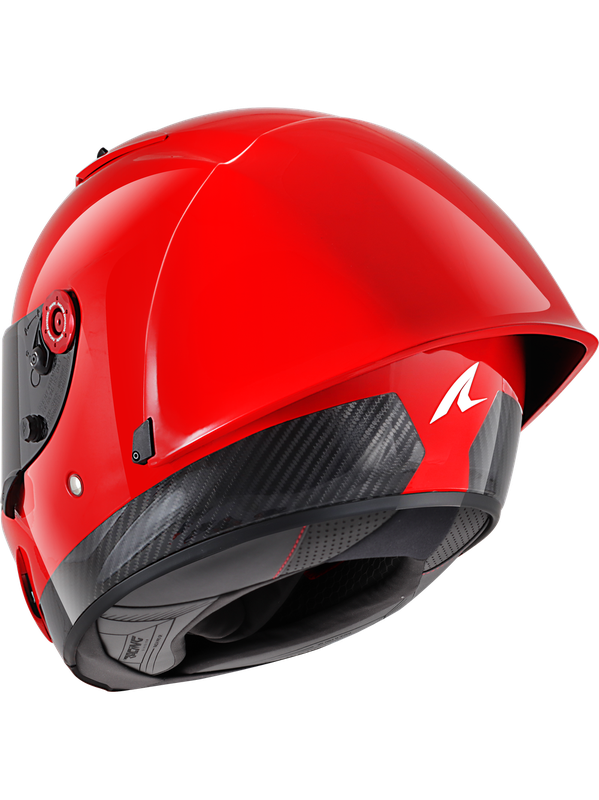 El spoiler posterior ofrece una alta eficiencia aerodinámica y estabiliza el casco a altas velocidades. Ha sido diseñado para desprenderse en caso de accidente para afectar lo menos posible al conjunto del casco y garantizar el máximo de seguridad para el piloto. El perfil de la mentonera de diseño racing reduce la resistencia aerodinámica detrás del carenado de la moto.