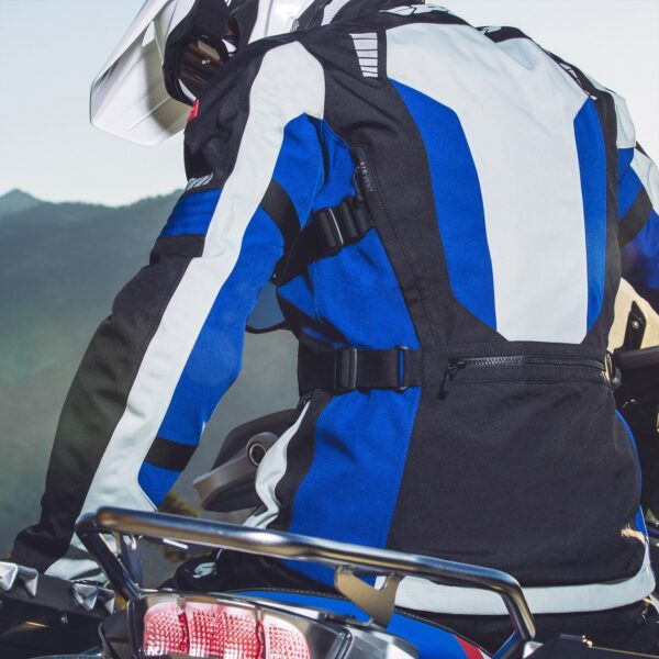 Para mayor seguridad, se puede conectar mediante cremallera con un pantalón y cada chaqueta tiene 2 bolsillos externos impermeables, un bolsillo interno tipo Napoleón impermeable y un bolsillo interno impermeable. Para los que quieren la máxima protección posible, la chaqueta incorpora bolsillos internos en los que alojar los protectores de espalda y pecho que se venden por separado.