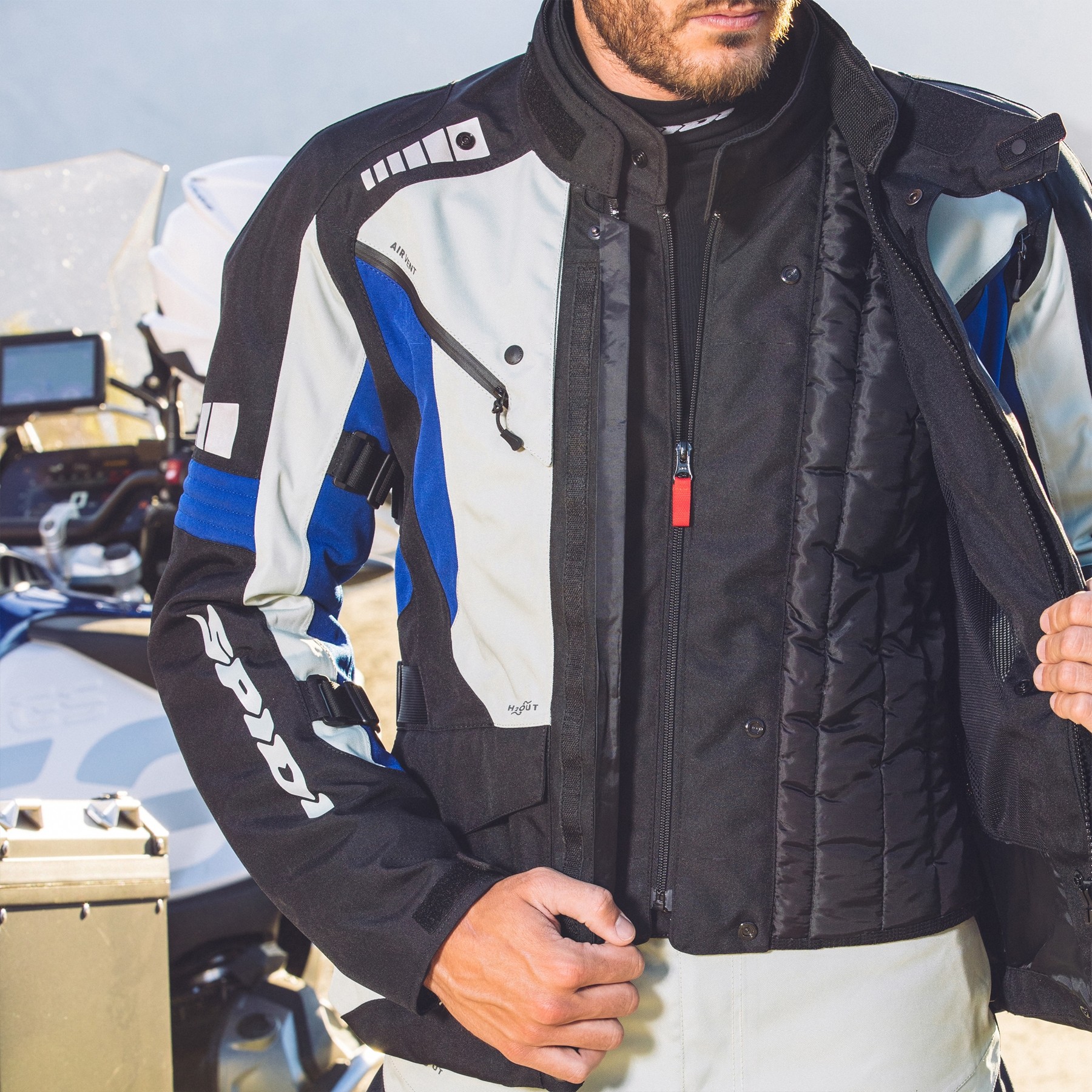 La chaqueta SPIDI Outlander H2Out ha sido desarrollada con el objetivo de tener una chaqueta laminada ideal para climas de invierno y verano. Para alcanzar ese objetivo hemos creado un innovador sistema de admisi贸n de aire sin costuras colocado en el pecho con un excelente rendimiento en t茅rminos de impermeabilidad y ventilaci贸n.