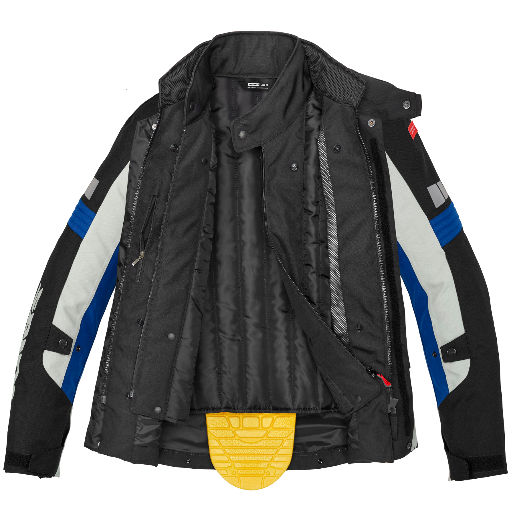 Para mayor seguridad, se puede conectar mediante cremallera con un pantal贸n y cada chaqueta tiene 2 bolsillos externos impermeables, un bolsillo interno tipo Napole贸n impermeable y un bolsillo interno impermeable. Para los que quieren la m谩xima protecci贸n posible, la chaqueta incorpora bolsillos internos en los que alojar los protectores de espalda y pecho que se venden por separado.