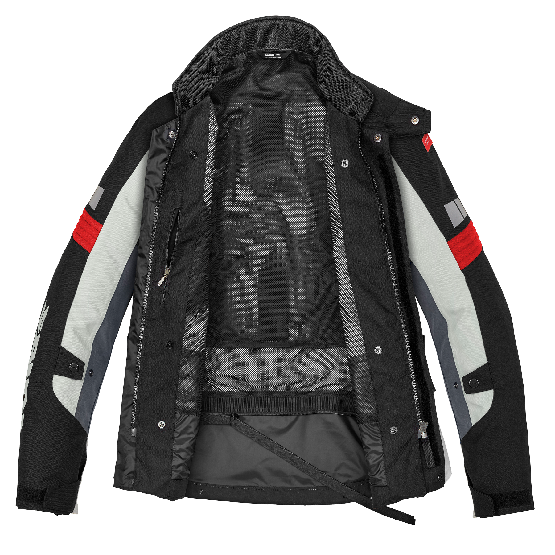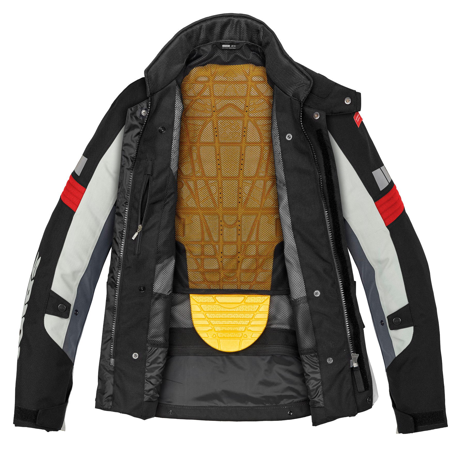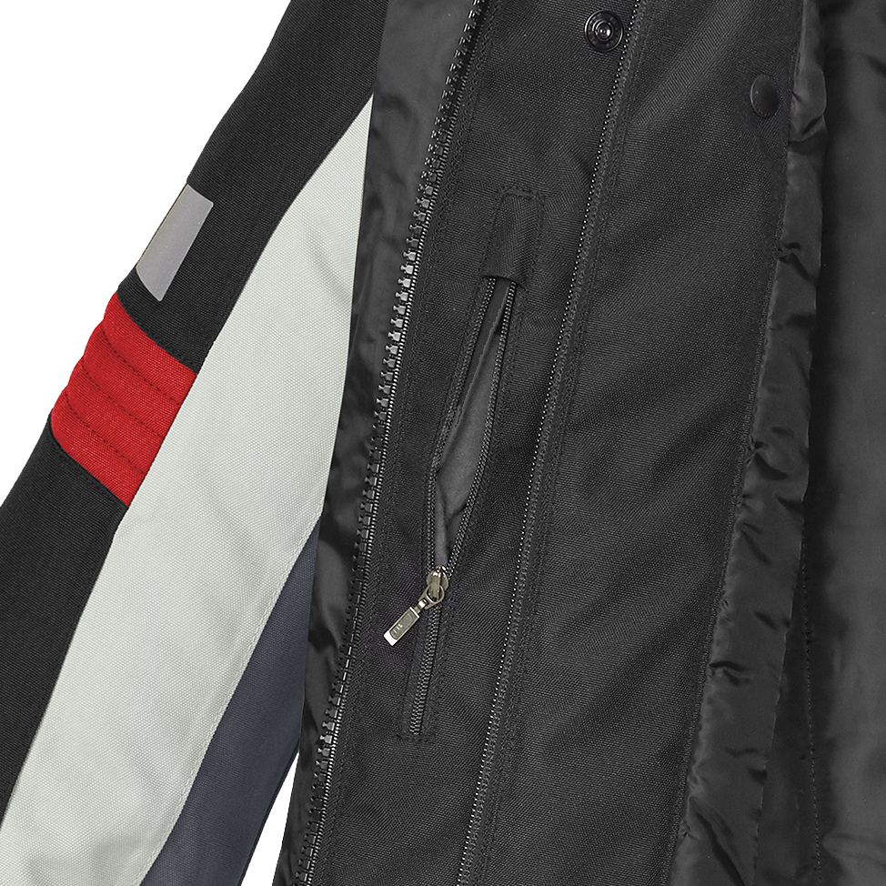 Para mayor seguridad, se puede conectar mediante cremallera con un pantal贸n y cada chaqueta tiene 2 bolsillos externos impermeables, un bolsillo interno tipo Napole贸n impermeable y un bolsillo interno impermeable. Para los que quieren la m谩xima protecci贸n posible, la chaqueta incorpora bolsillos internos en los que alojar los protectores de espalda y pecho que se venden por separado.