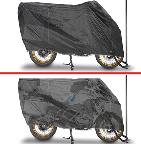 La funda protectora GIVI S203XL está diseñada para ofrecer la máxima protección a motos y scooters de gran tamaño. Fabricada con materiales resistentes e impermeables, protege frente a la lluvia, el polvo, los rayos UV y la suciedad. Su corte amplio garantiza un ajuste cómodo incluso en vehículos equipados con maletas o parabrisas. Incorpora bordes elásticos, costuras reforzadas y aberturas para pasar el candado, asegurando estabilidad y seguridad en todo momento. Además, cuenta con sistema de ventilación para evitar la condensación de humedad. Ideal para proteger tu moto tanto en exteriores como en garajes.